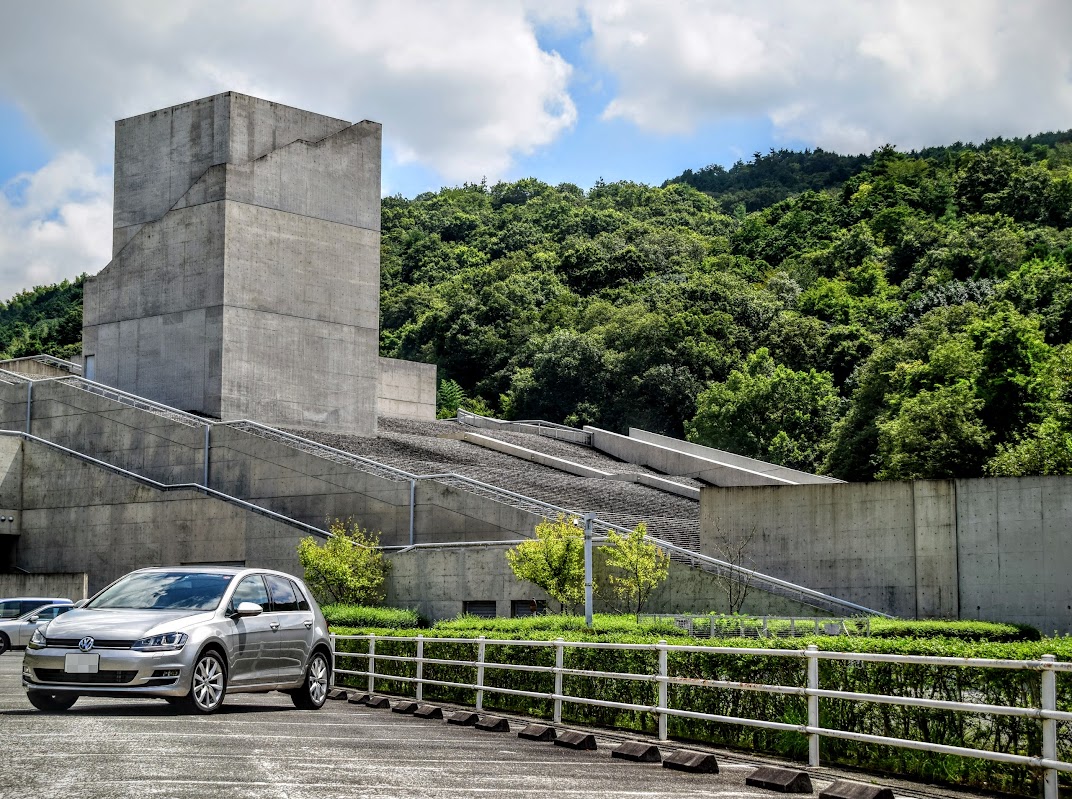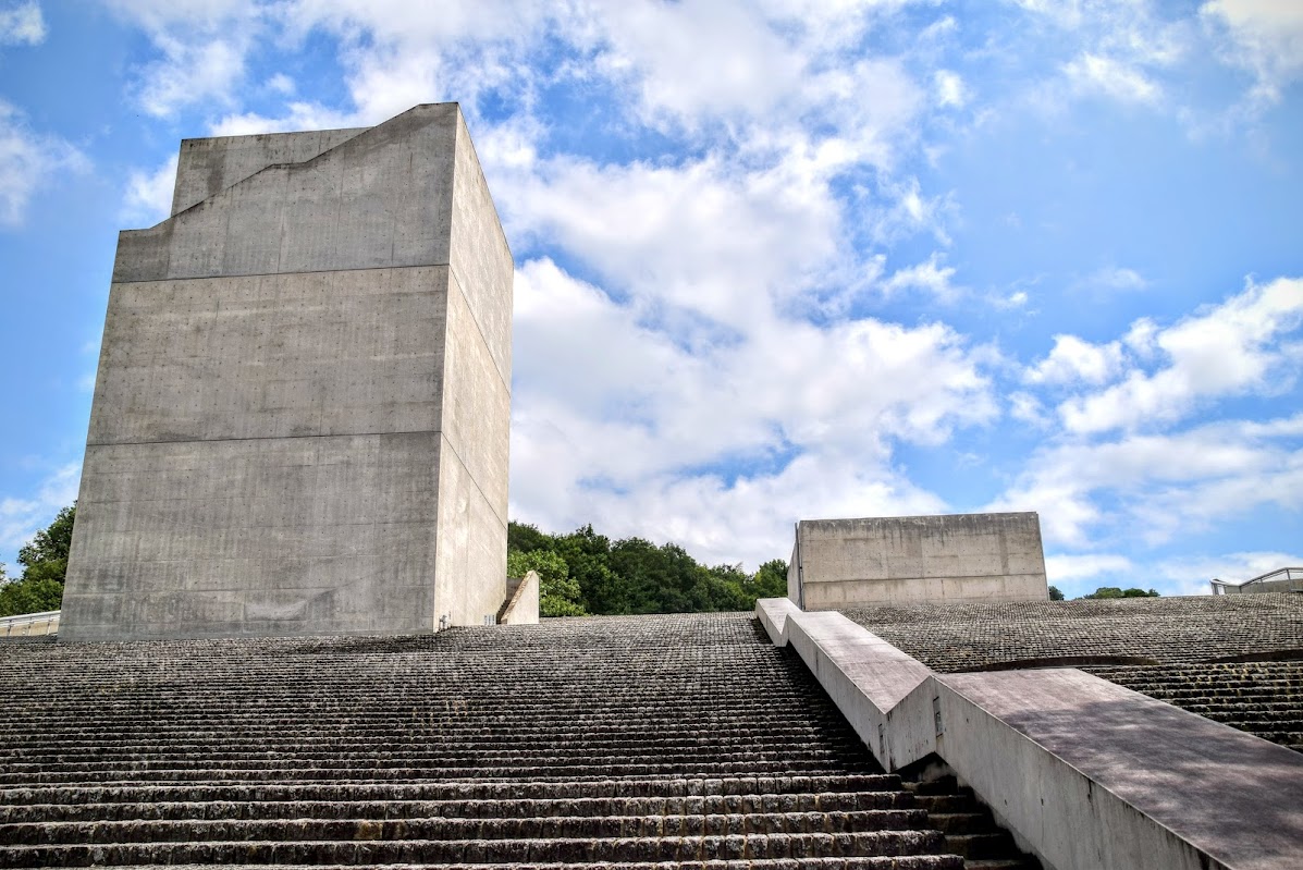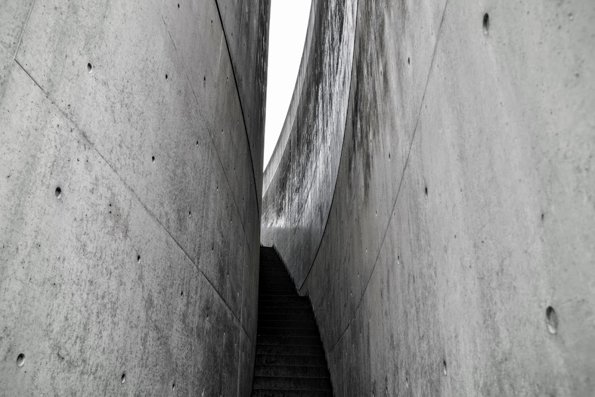 コンクリートの大きな壁にある通路を抜けると博物館が見えてきます。