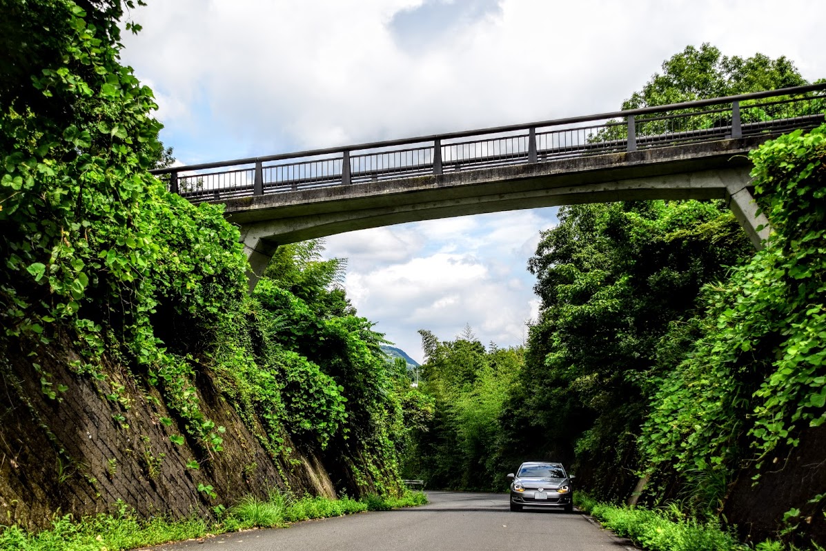 交通量が少ないので少し車を停めて 緑と橋が素敵で・・