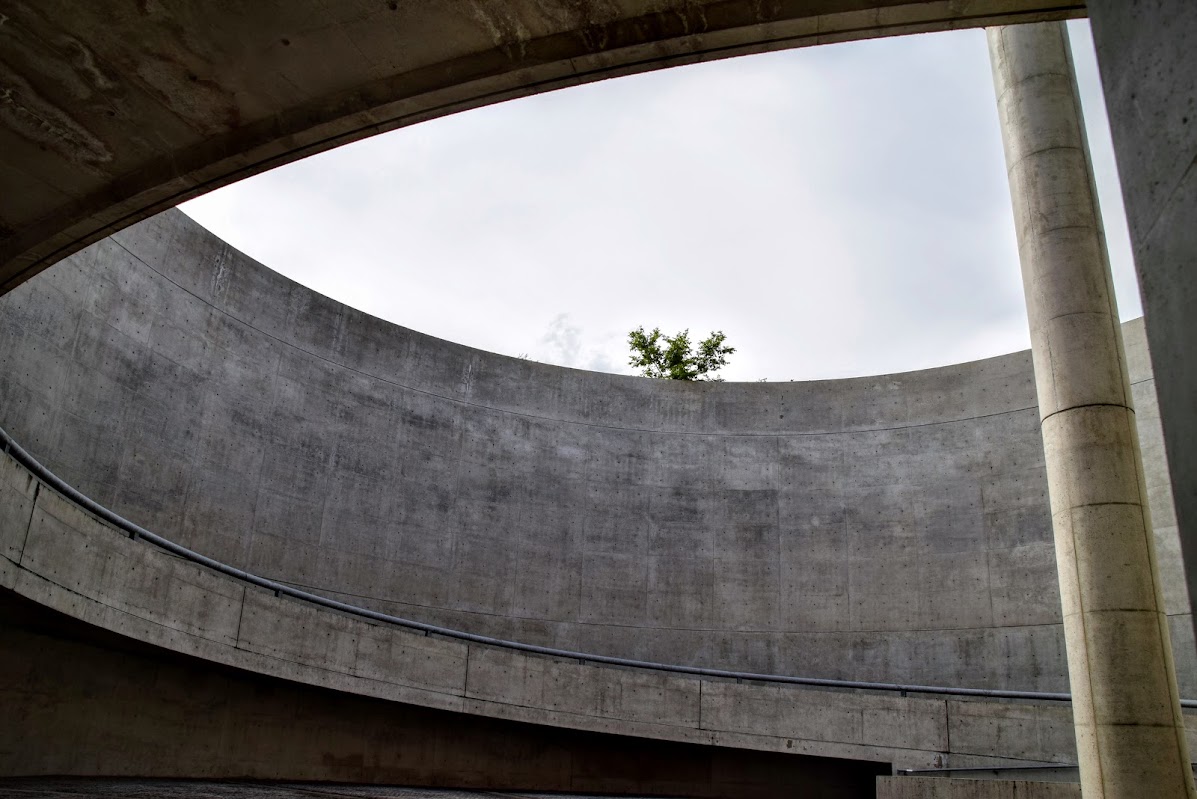 博物館に入る手前に大きなコートが現れ円が独特な雰囲気です。